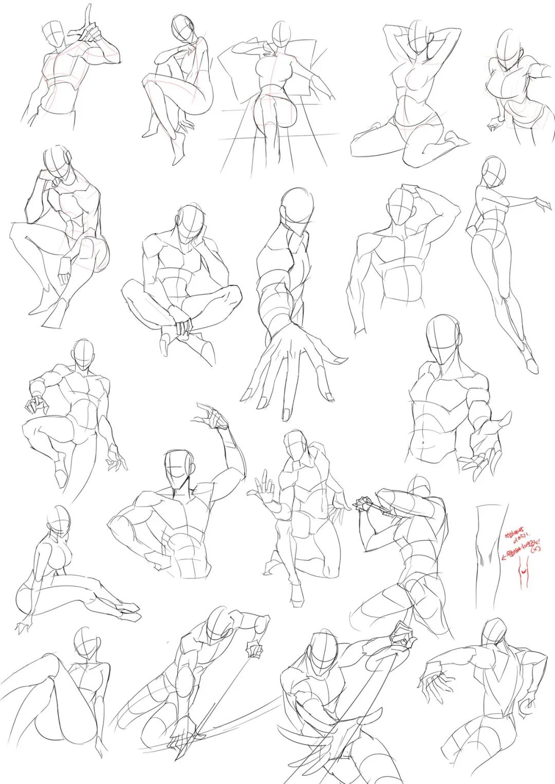 1000 examples of human body sketches, materials with full modeling ability, decisive collection