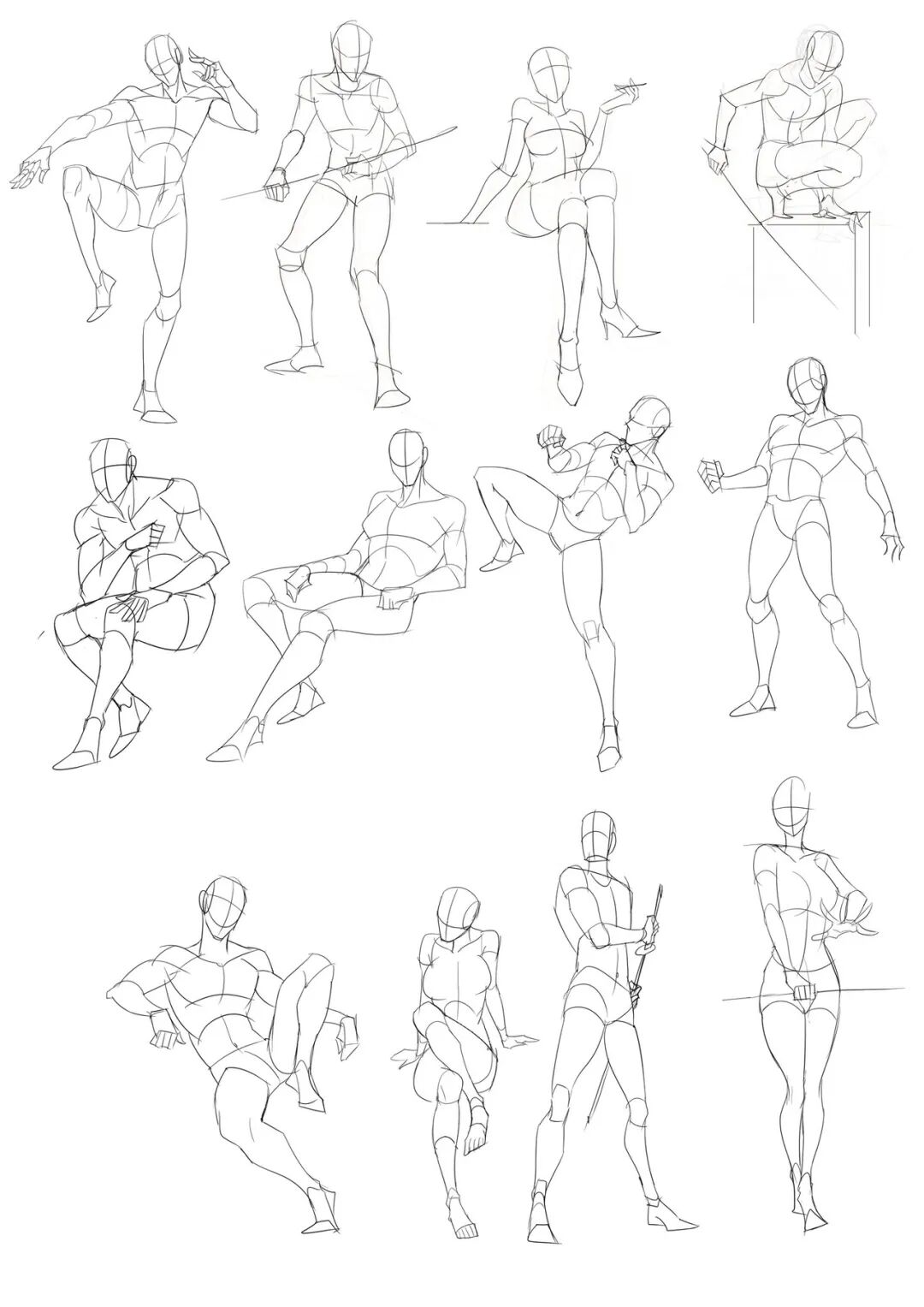 Determine the posture of the characters