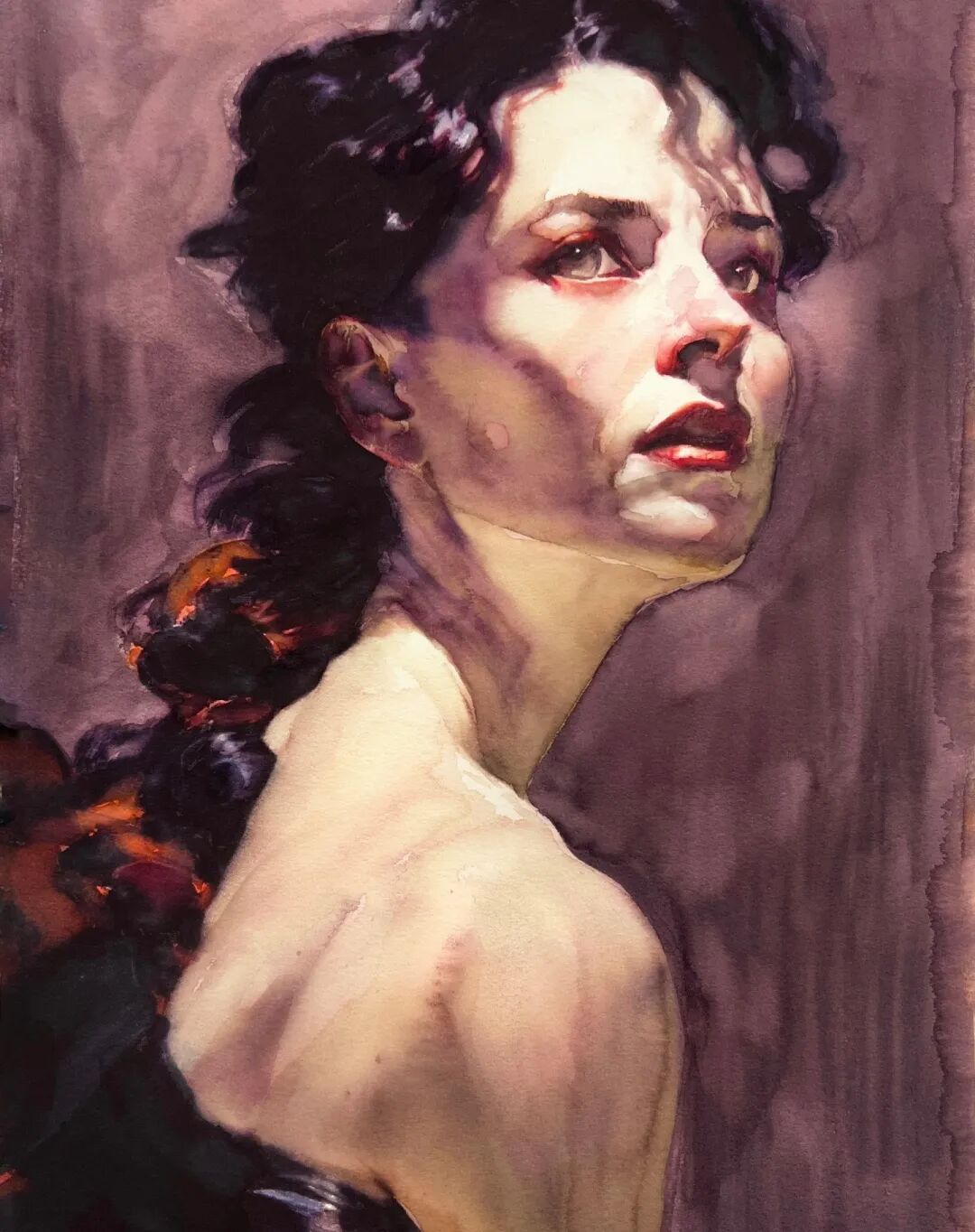The brushstrokes in Brian Haberlin's watercolor figure paintings are bold and careful,