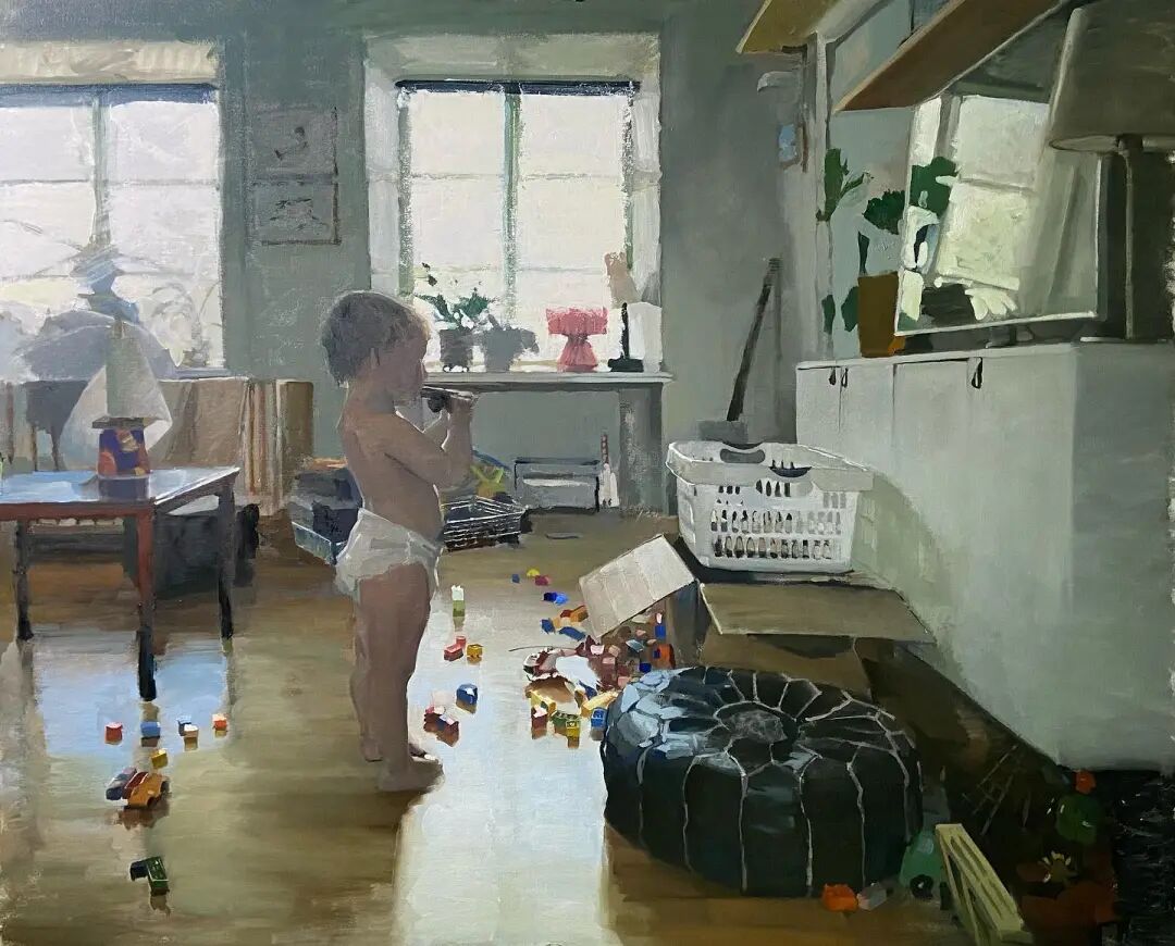 When Gustav lived with his wife, this was a small world of two people, but when Gustav's first son was born, it became a new family of three people, which added many unpredictable changes to the theme of the creation. Fortunately, Gustav has just given birth to his second son, which gives his family oil painting a lot of inspiration.